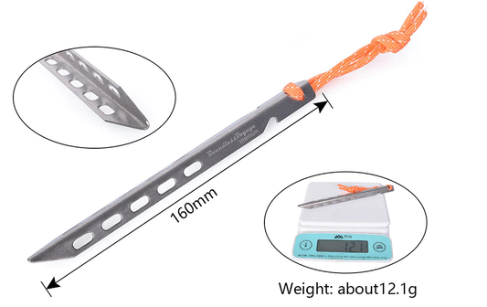 8 stk Titanium telt/tarp-plugger 16 cm lengde, totalvekt kun 97 gram